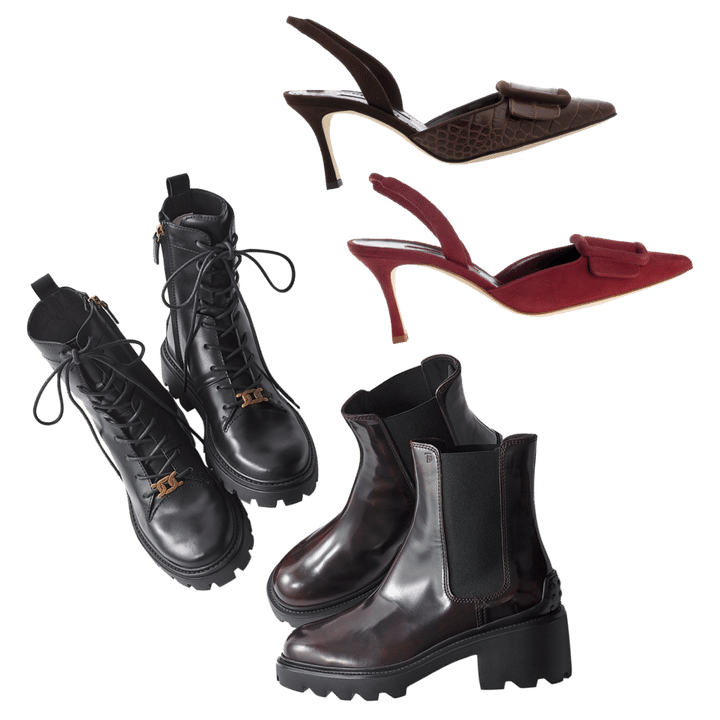 見た目も脚をキレイに見せてくれるショートブーツ&90年代ムードのミュール。オススメは断然コレ!