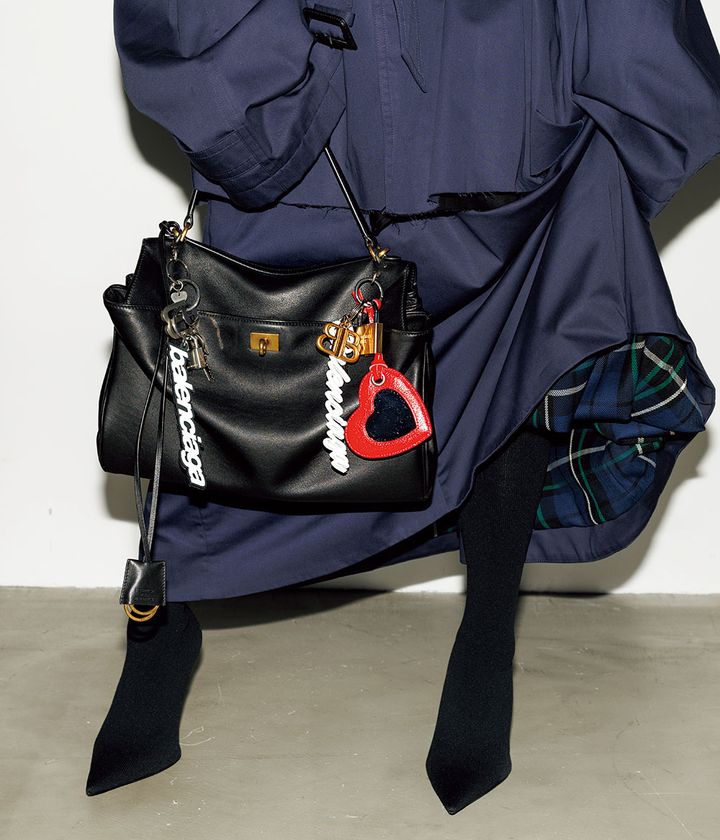 チャーム(右)「パロマ キーリング」¥83,600チャーム(左)「キット キーリング」¥66,000バッグ「ロデオ M ハンドバッグ」¥671,000取り外し可能なストラップ付コート¥506,000スカート¥218,900靴¥243,100※すべて予定価格(すべてバレンシアガ/バレンシアガ クライアントサービス)