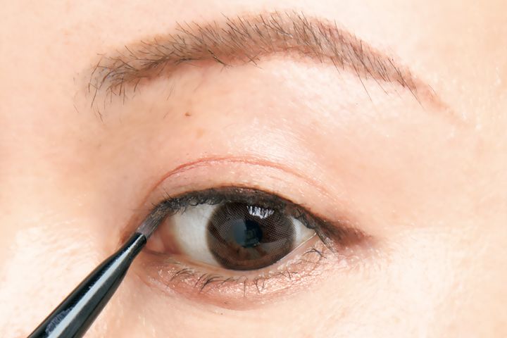 シワが目立つ人はまぶたが乾燥気味でなめらかにラインが描きにくいので、同じジェルタイプでも塗り方に工夫を。まつ毛の粘膜部分を隙間ができないよう丁寧に埋めていくイメージで。