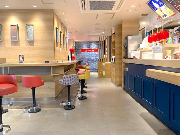 2024年6月にオープンした「やおりんCafe」があるのは、JR新宿駅中央東口改札内。やおりんとしては、鎌倉駅店に続く4店舗目で、新形態のカフェスタイルです。入り口付近にリンゴのスタチューがいくつも飾られていてとってもキュート♪