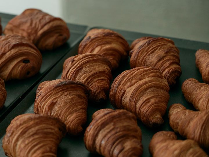 石臼挽き小麦粉をブレンドした生地には甘みとして少量のハチミツやきび砂糖を入れており、口なじみのいいクロワッサンに仕上げているそう。