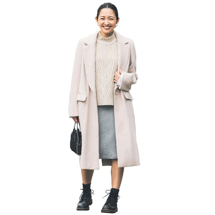 地元の中学時代からの友人たちはお酒好きで、ママになった今も仲が良く毎月集まっています。恵比寿に隠れ家的な家庭料理屋さんがあり、逗子から都内に出て食事をするとなると、通いなれたこのお店に行くことが多く、気心の知れた友人とアットホームな雰囲気で、心置きなく飲めるのが至福の時間です。女子会の時は短丈スカートとお気に入りのドクターマーチンのブーツを合わせました。 佐久間由起さん(36歳・ベビーマッサージ講師 6歳男の子のママ)