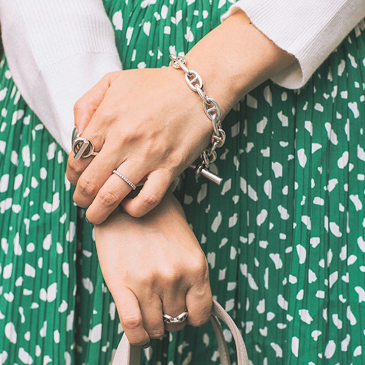 育児中にはなかなかつけられないエルメスのシルバーアクセもこの日はたくさん重ねづけ♡