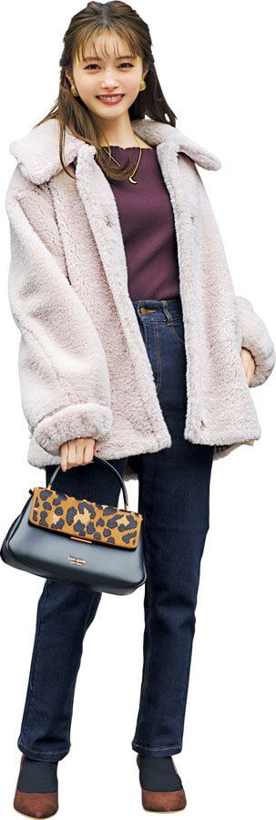 小柄さんが淡色ファーコートを着るなら?ショート丈&細身ボトムで目線をアップ!