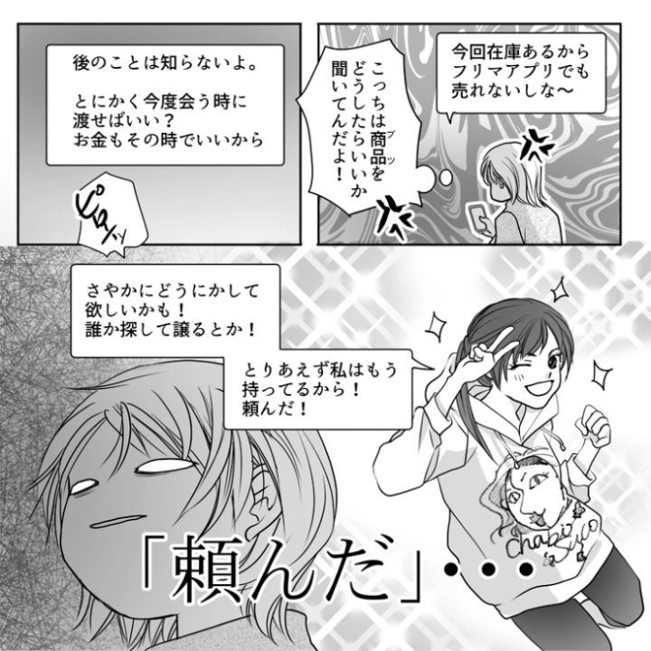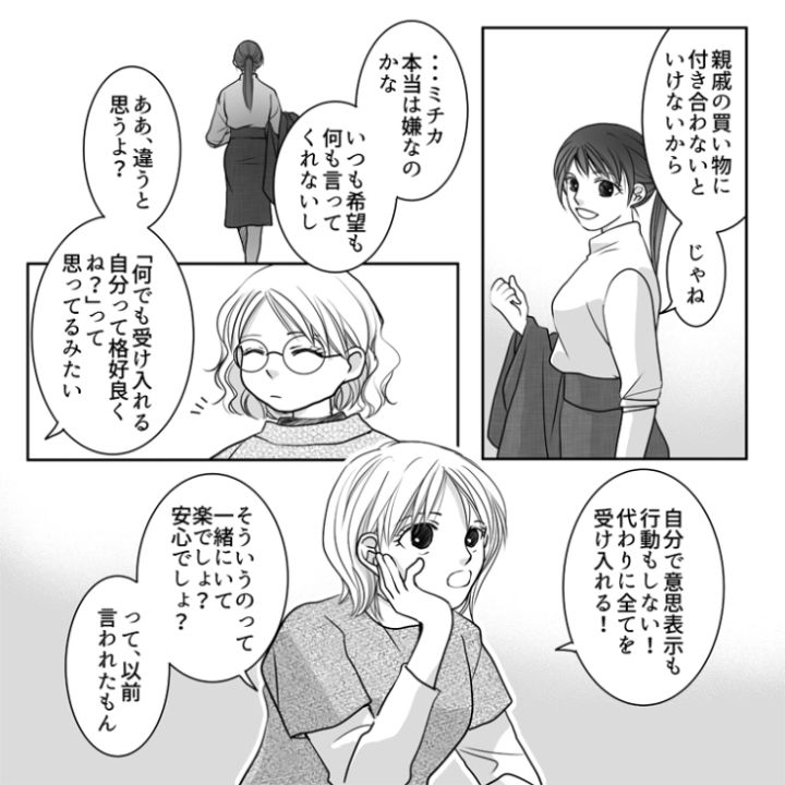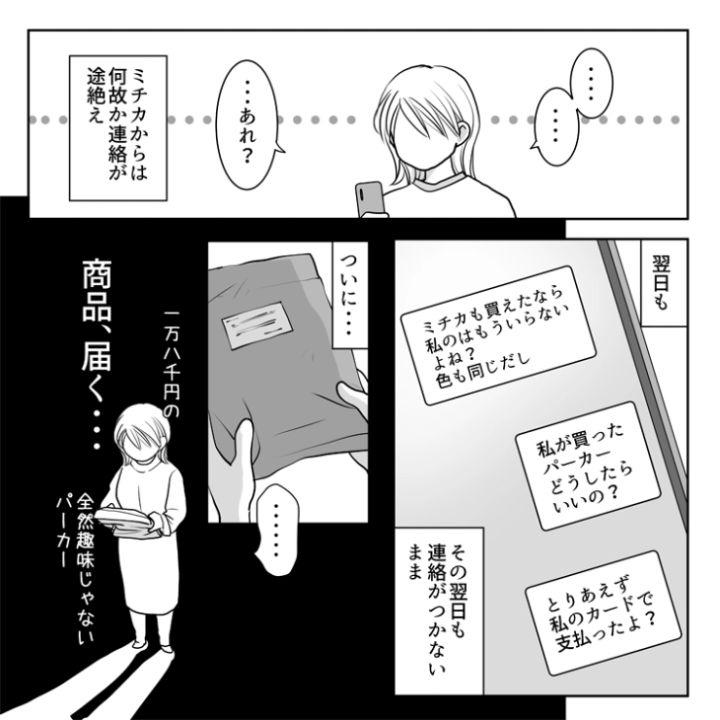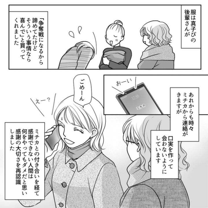 主人公のさやかには高校時代から仲が良い真子とミチカがいます。今回はこのうちのミチカにまつわるお話です。このミチカ、とんでもない自己中女だったのです・・・。