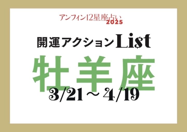 当たるって大評判!andGIRLで大人気の占い師・アンフィン(立木冬麗)先生による12星座占い。今回は、2025年の12星座別開運アクションをお届け。あなたの運勢をアンフィン先生が徹底指南します♡