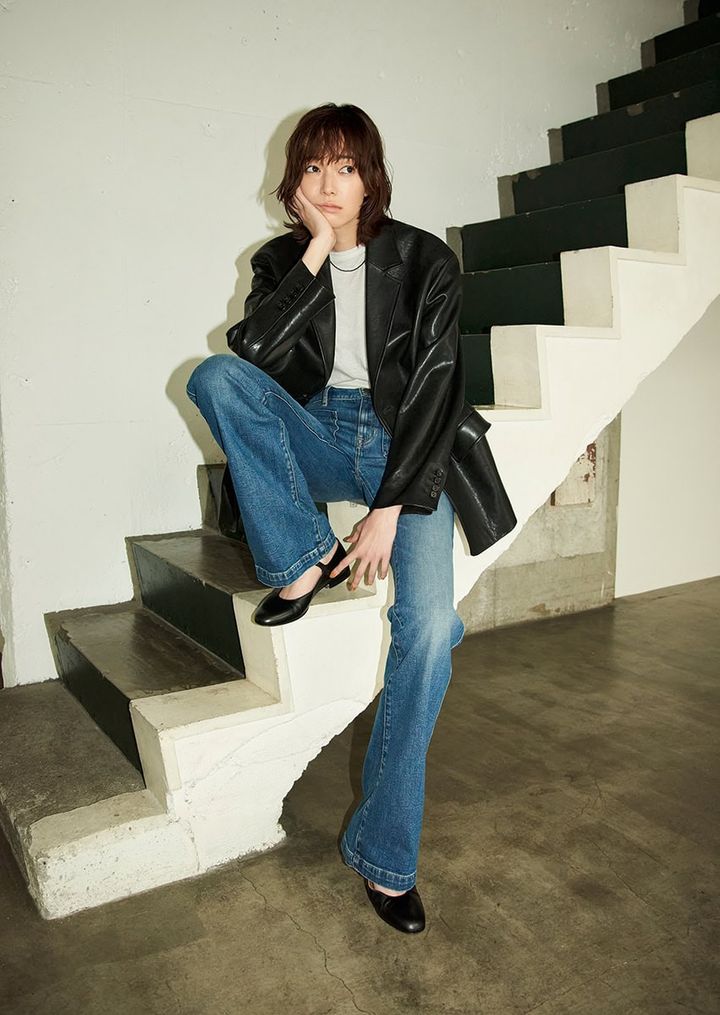 ジャケット¥143,000(エイチ ビューティー&ユース)、Tシャツ¥7,480(ザシンゾーン/シンゾーン 表参道本店)、デニム¥35,200(ローレン ラルフローレン/ラルフ ローレン)、ネックレス¥35,200(エテ ビジュー)、シューズ¥104,500(ジェイエムウエストン/ジェイエムウエストン 青山店)