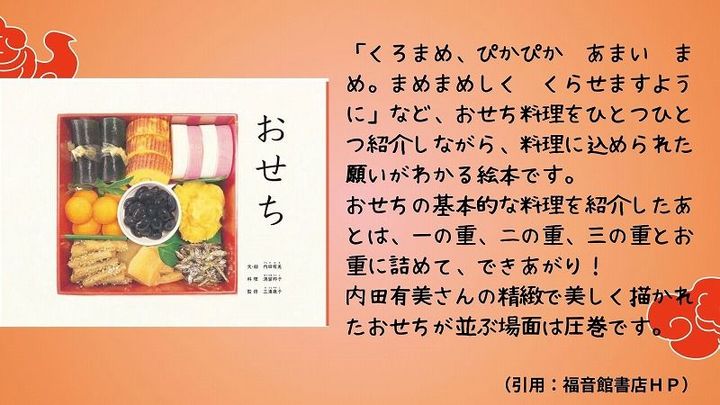 2、『おせち』(福音館書店)文・絵:内田有美/ 料理:満留邦子/ 監修:三浦康子
