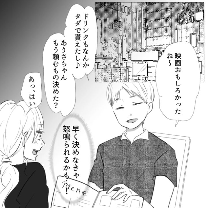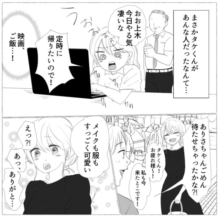 主人公のありさは絶賛婚活中。この前参加した合コンでちょっと良さげな男性を見つけて、早速デートの約束をとりつけます・・・。
