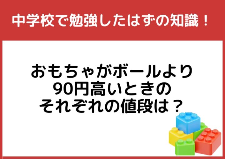 中学校で勉強したはず!「おもちゃがボールより90円高いときのそれぞれの値段」は?