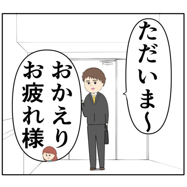 「ただいま~」と仕事から帰ってきたろみ緒さんを「おかえり。お疲れ様」と笑顔で迎えるめいさん。