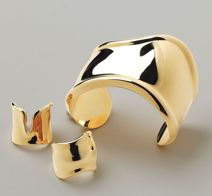 右手人差し指につけたリング「エルサ・ペレッティTMボーン リング」¥737,000左手人差し指につけたリング「エルサ・ペレッティTMスプリット リング」¥687,500バングル「エルサ・ペレッティTMボーン カフ」¥2,915,000(すべてティファニー/ティファニー・アンド・カンパニー・ジャパン・インク)トップス¥20,900(アナイ)