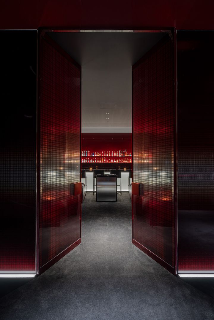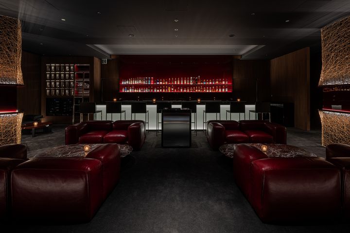 レセプションを抜けてバーへ入ると、グッチらしい洗練された空間にバーカウンターが出現。手前にはゆったりと寛げるテーブル席があり、奥には個室も用意されています。
