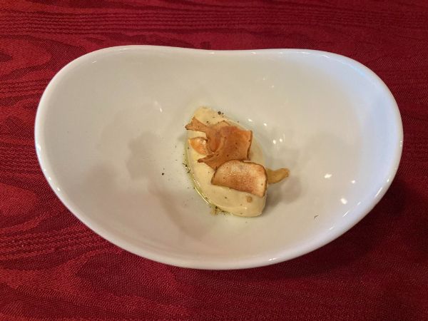 こちらは、菊芋とフォアグラのムース。 コクのある食材のマリアージュは、香りと味わいが一気にひろがります。 そしてなめらかな口溶けにうっとり。