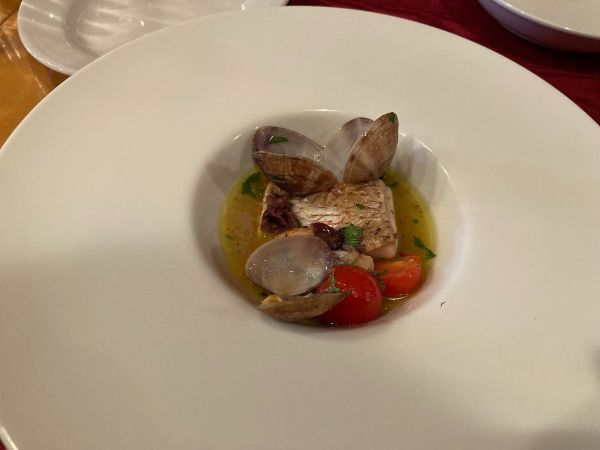 魚料理は、真鯛のアクアパッツァ。 ふんわりとした鯛はもちろん、魚介出汁のスープが最後まで贅沢です。