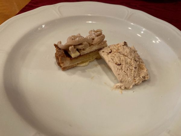 そして最後はドルチェとカフェ。 本日はモンブランタルトとヘーゼルナッツのセミフレッドです。 どちらも素材の香りを残しながらとろける冬のデザートです。