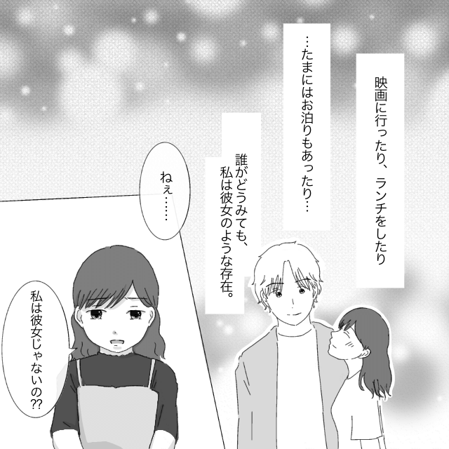 映画に行ったり、ランチをしたり・・・たまにはお泊まりもあったり・・・。誰がどうみても、私は彼女のような存在。だから私はレンに聞いてみました。「ねぇ・・・私は彼女じゃないの??」