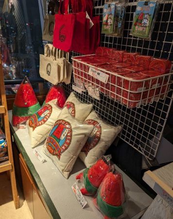 テレビ塔のキャラクター、「テレビ塔のテレビ父さん」のグッズもいっぱい。
