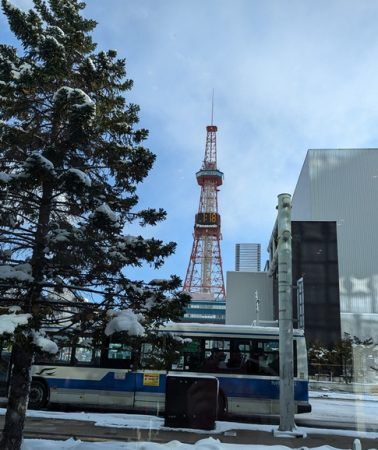 札幌の老舗、丸井今井デパート・通称「丸井さん」(←市民は親しみをこめてこう呼びます)も見えます。