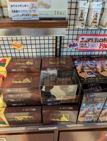 真っ赤なフォルムがトレードマーク、すっかり市民にもおなじみとなりました。誕生日特典でいただいた「さっぽろテレビ塔のショコラケーキ」も販売していました。