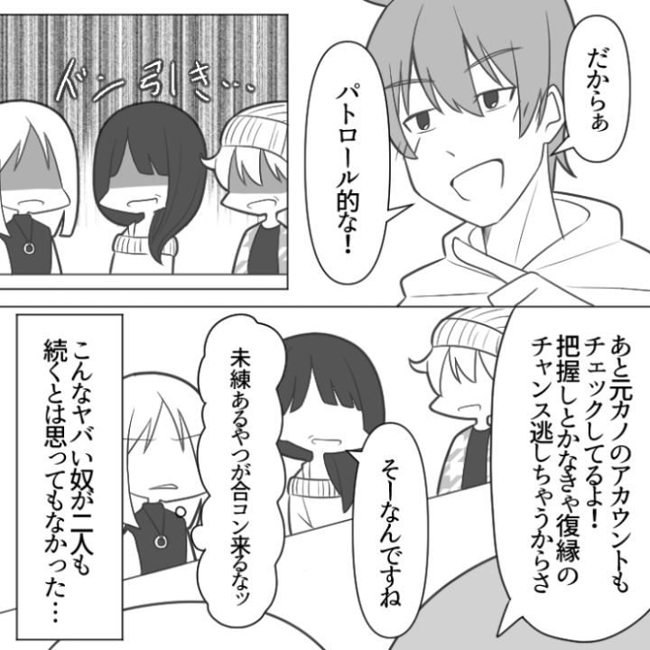 3. 「毎日元カノの家の周り散歩してる〜」モラハラ・借金・未練タラタラ男・・・合コンの相手が全員バケモノ級の男でドン引きした話