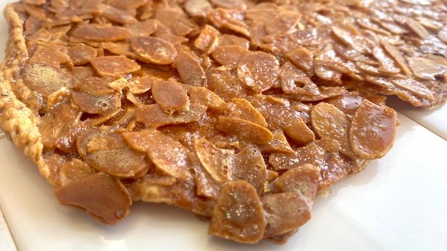 アーフィーは、発酵バターを使用したパイ生地にアーモンドをのせ、フロランタン風に仕上げたお菓子。表面はキャラメリゼされたアーモンドがぎ〜っしり! 香ばしく焼き上げられています。