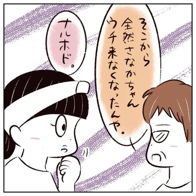 「そこから全然さなかちゃんウチ来なくなったんや」とお母さんから聞き、まるさんは「ナルホド」と納得。