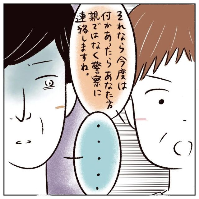 母親だけでなく父親も話しが通じないと感じたお母さんは「それなら今度は何かあったらあなた方親ではなく、警察に連絡しますね」と言いました。