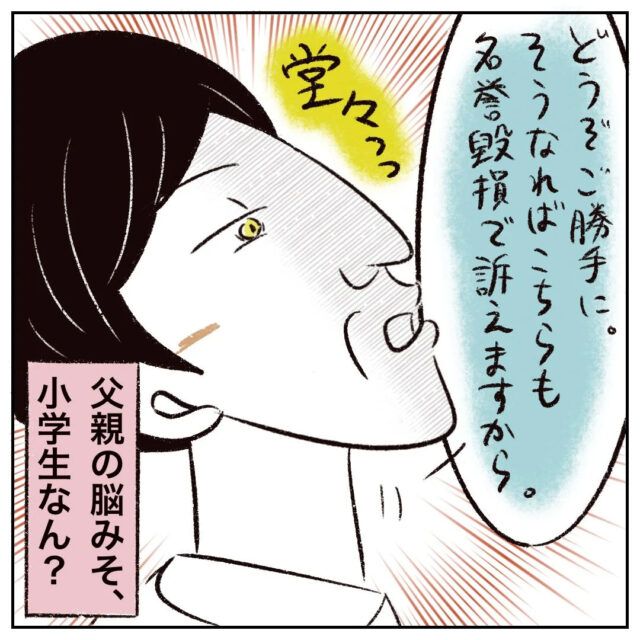すると、張り合うように「どうぞご勝手に。そうなればこちらも名誉棄損で訴えますから」と堂々と言い放った父親。