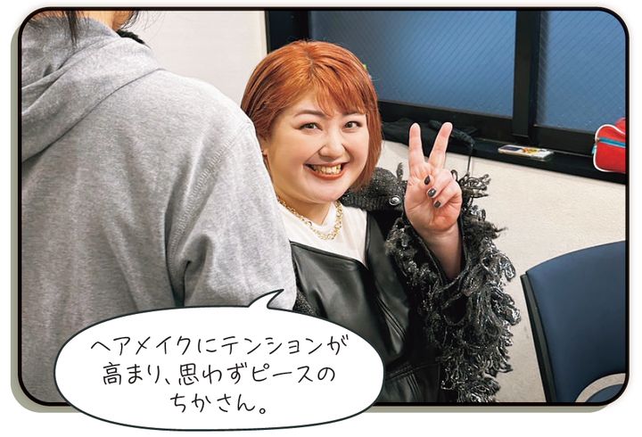 「私はエッジの効いた辛口コーデを纏っているチャグちゃんが大好きなので、今回も普段より強気な感じのスタイリングをお願いしました♡ 撮影は夕暮れ時の屋上にてフラッシュを使って、モードな建物を背景に! 今回の辛口な雰囲気とは真逆で、ふんわりほんわかしているちかさんですが、スタイリング、ヘアメイク、そしてライティングでこんなにも大変身‼ 撮影のおもしろさをめちゃめちゃ感じました♡ ハードなだけじゃなくレディーライクで品のある凛とした印象がMIXされてるのがグッとくるよね‼」