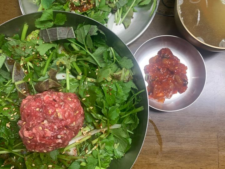 「ユッケ」「ビビンパ」は日本人にも好まれる韓国料理ですよね。私もユッケは大好きな韓国料理の一つです。そんな私が、今回紹介したいのは、聖水洞の人気店「ヌンドンミナリ」の「ミナリユッケビビンパ」。
