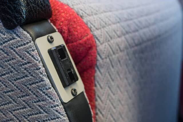 ▲各席にコンセントを装備(車両によってはUSBポートを採用)