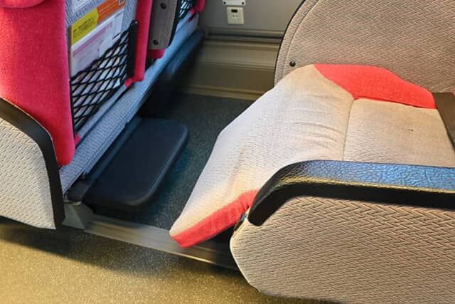 跳ね上げ式のレッグレストは、睡眠時も脚を楽に保てます。さらにフットレストもあるので靴を脱いですごせるのは楽ちんです。※一部の車両や座席ではフットレストが設置されていない場合があります。