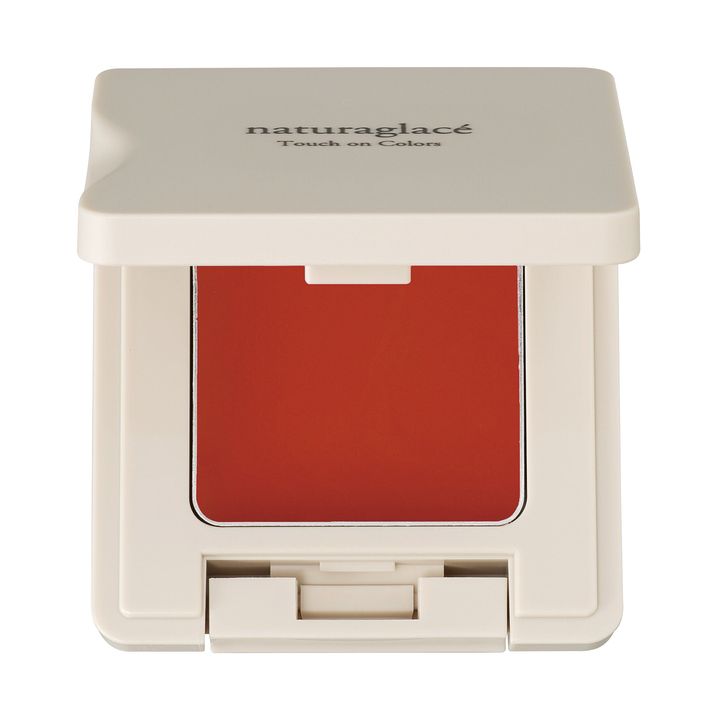 コンシーラーを使うとシワに入るので、オレンジのチークでクマやくすみを飛ばします! 指塗りで簡単に血色感溢れるツヤ肌に。SPF17・PA ++ ¥3,080(ナチュラグラッセ)