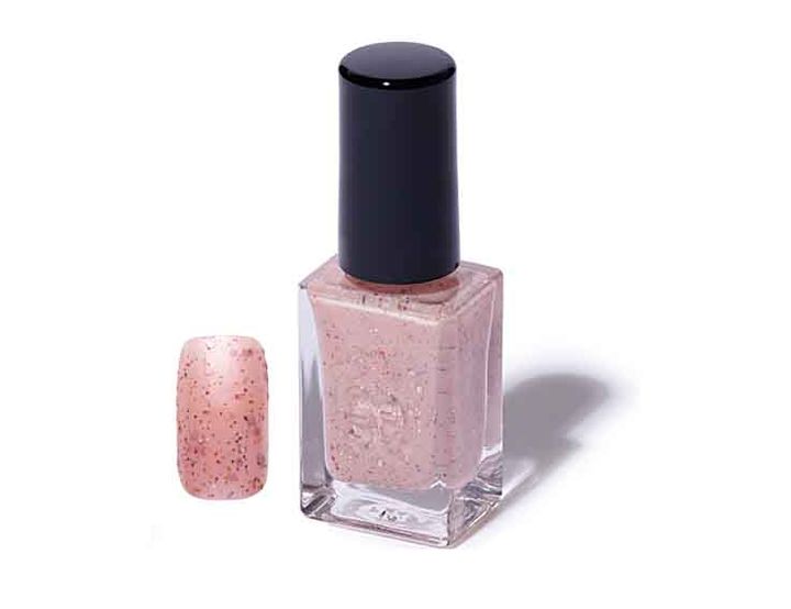 指を細く長く見せる、定番カラーの淡ピンクには、大粒のグリッターで遊び心を!
