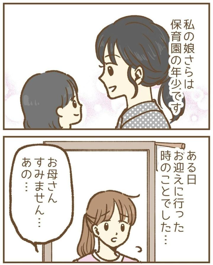 このエピソードはたぷりく(@taprikoo)さんのフォロワーさんの経験を漫画化したものです。園での集団生活の中では子ども同士のトラブルも起きますよね。そんな時、親としてどう対応したらいいのかは悩ましいところなのではないでしょうか。ある日、フォロワーさんの娘・さらちゃんが友達のこはるちゃんをひっかいてしまったと先生から報告を受けます。ちょうどこはるちゃんのママもお迎えに来ていたため、謝罪をしたフォロワーさんでしたが…。『保育園のトラブル』ダイジェスト版でどうぞごらんください。