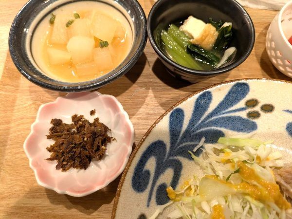 小鉢が多くてめっちゃ嬉しい!煮物に佃煮などの小鉢があるのは健康的で嬉しいですね。普段、好きなもばかり選んで食べてしまいがちなのでヘルシーな定食は有難いです。