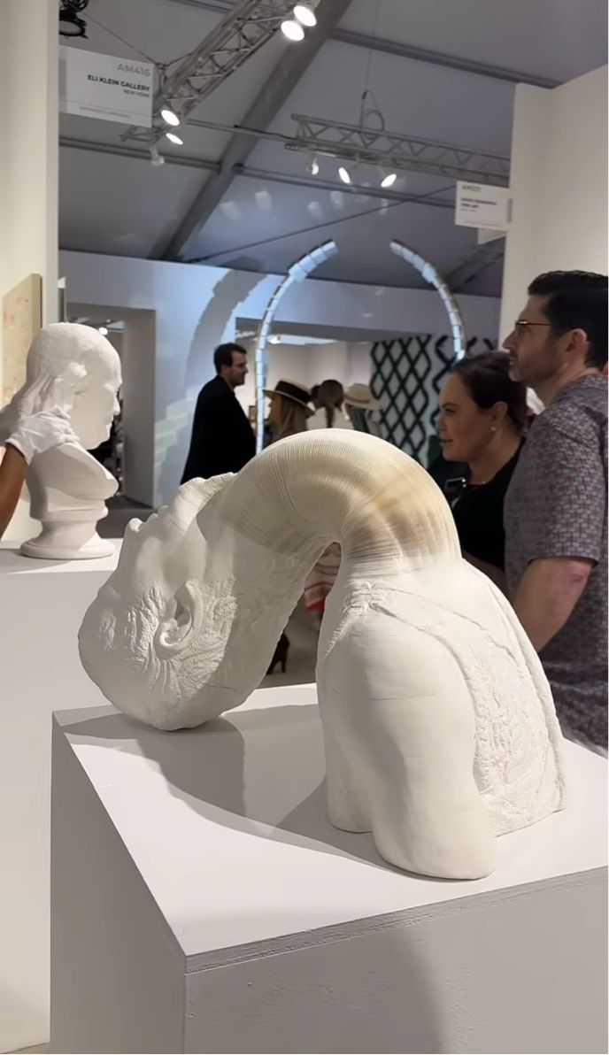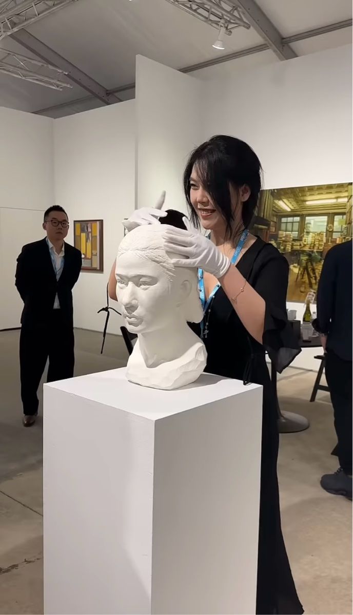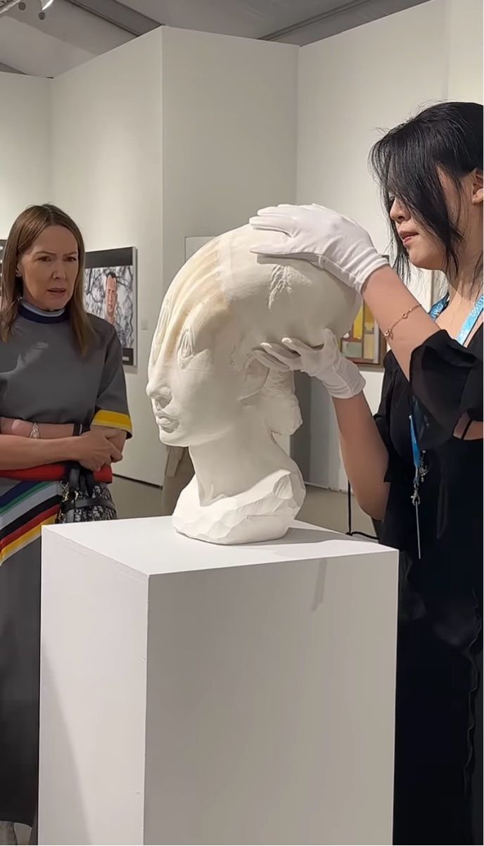 展示台の上に飾られた美しい彫刻。 人物の顔がリアルに表現されたこちらの作品は、石膏で作られているように見えましたが・・・。