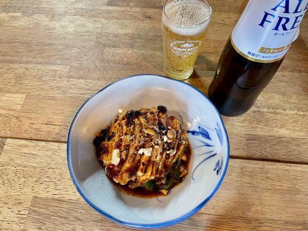 月並みですが、四川なら麻婆豆腐と思い麻婆豆腐の定食と、本日の麺から、横浜名物のサンマー麺。あと一品、よだれ鳥を。そして思わずノンアルコールビールも頼んでしまいました。