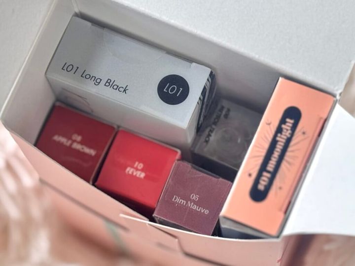 「ラッキーバッグMセット」の中身は、ティントやグロス、シャドウ、マスカラなど全7品! カラーはランダムで、開けるまで何色が入っているか分かりません。