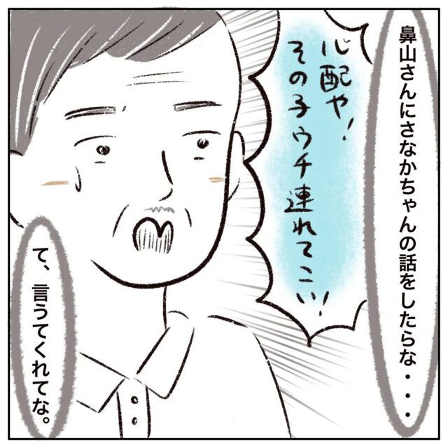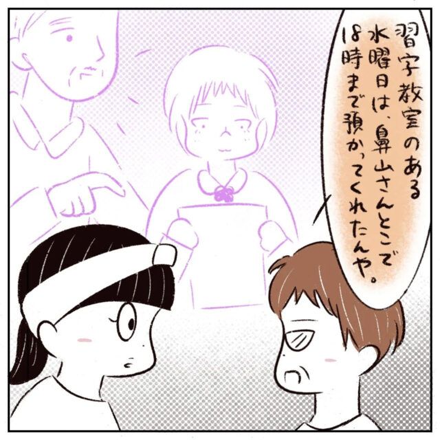 「習字教室のある水曜日は、鼻山さんとこで18時まで預かってくれたんや」鼻山さんは、いつも公園で時間を潰すしかなかったさなかちゃんを習字教室で預かってくれたのです。