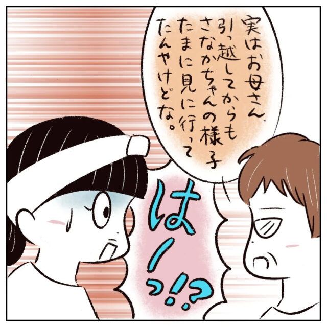 すると、お母さんは「実はお母さん、引っ越してからもさなかちゃんの様子たまに見に行ってたんやけどな」とさらり。まるさんは「はーっ!?」と驚きます。