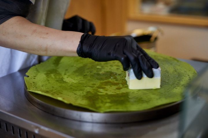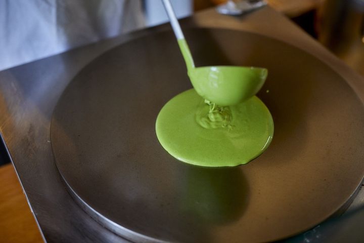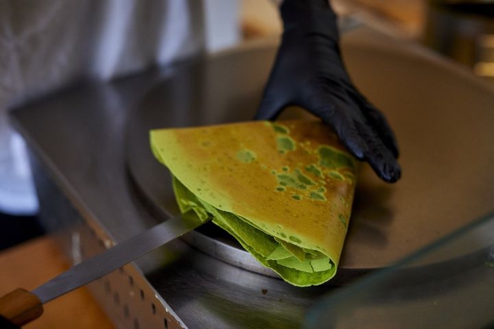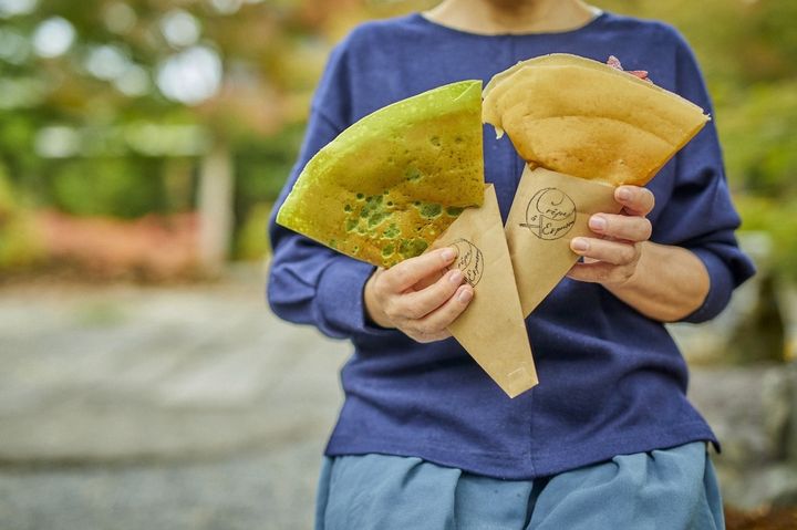 薄さ0.1㎜? 極限まで薄いパリパリ生地の食感と抹茶の香りがたまらない「クレープとエスプレッソと嵐山」の抹茶クレープ