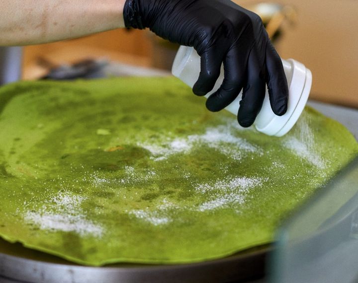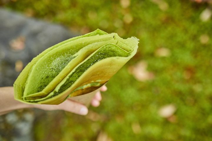 3. 薄さ0.1㎜? 極限まで薄いパリパリ生地の食感と抹茶の香りがたまらない「クレープとエスプレッソと嵐山」の抹茶クレープ