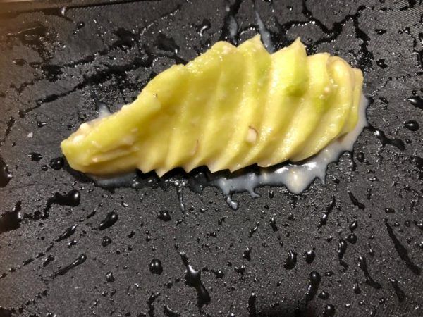 (量が少ないので、ハヤトウリの表面に調味料を塗り付けるイメージです)