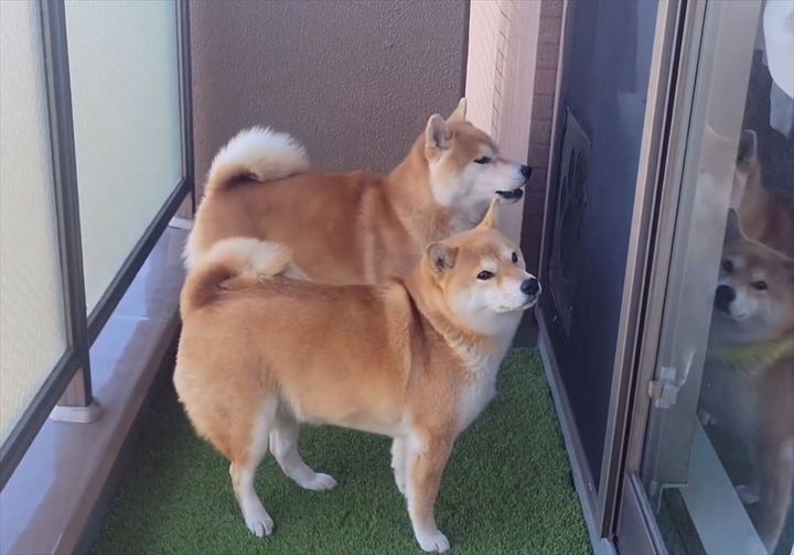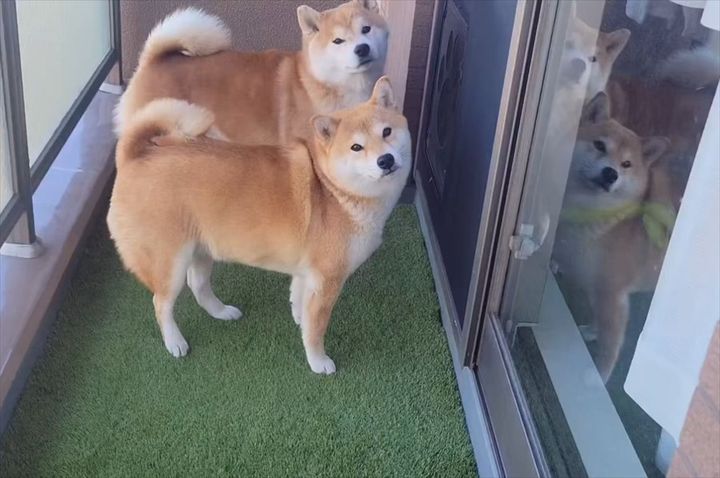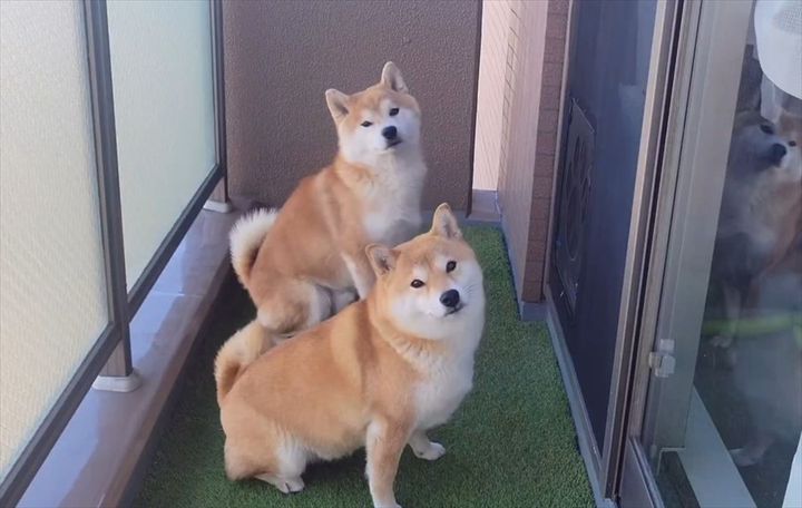 飼い主さんが映すのは、柴犬の『こむぎ』くんと豆柴の『わらび』ちゃんの姿。 部屋にあるソファを撤去するために業者さんが来ていたとのことで、この時この子たちはベランダで待機していました。