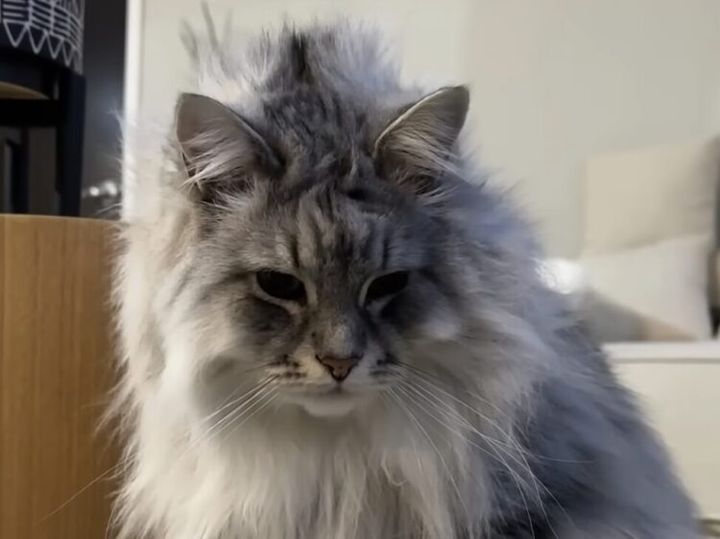 お昼寝後のから起きた猫さん、寝癖がすごいことに(笑)