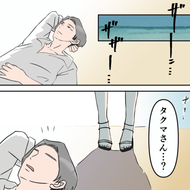 サユリと口論の末、外に飛び出したタクマは、砂浜に寝転がって波の音を聞いていました。