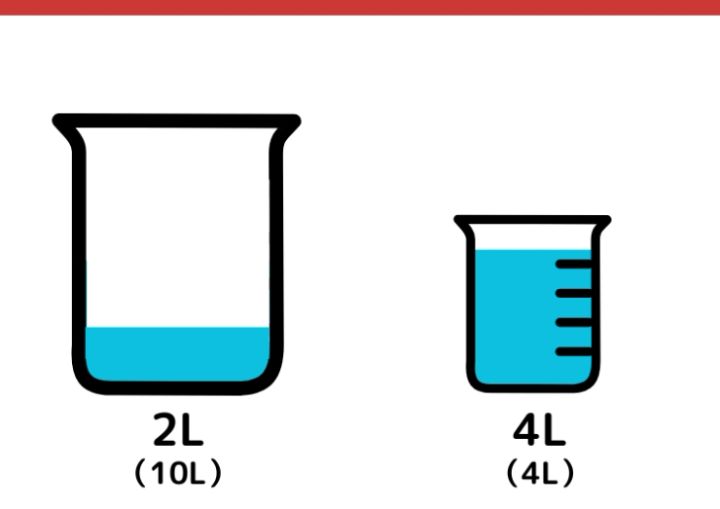 水がちょうど2L入る容器が手元にありません。10Lと4Lの容器を使って、ちょうど2Lの水を計る方法を考えてください。