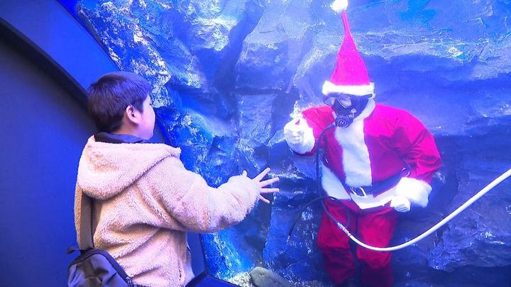 北海道北見市の水族館では水槽の中にサンタクロースが現れました。